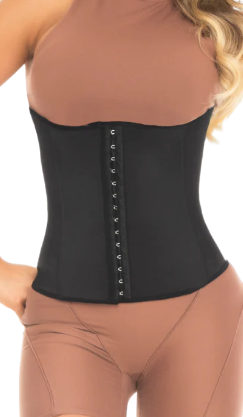 Cinturilla strapless moldeadora elaborada en látex, cuenta con 3 niveles de abrochadura y ganchos cubiertos, 4 varillas internas que permiten mantener una postura corporal correcta.